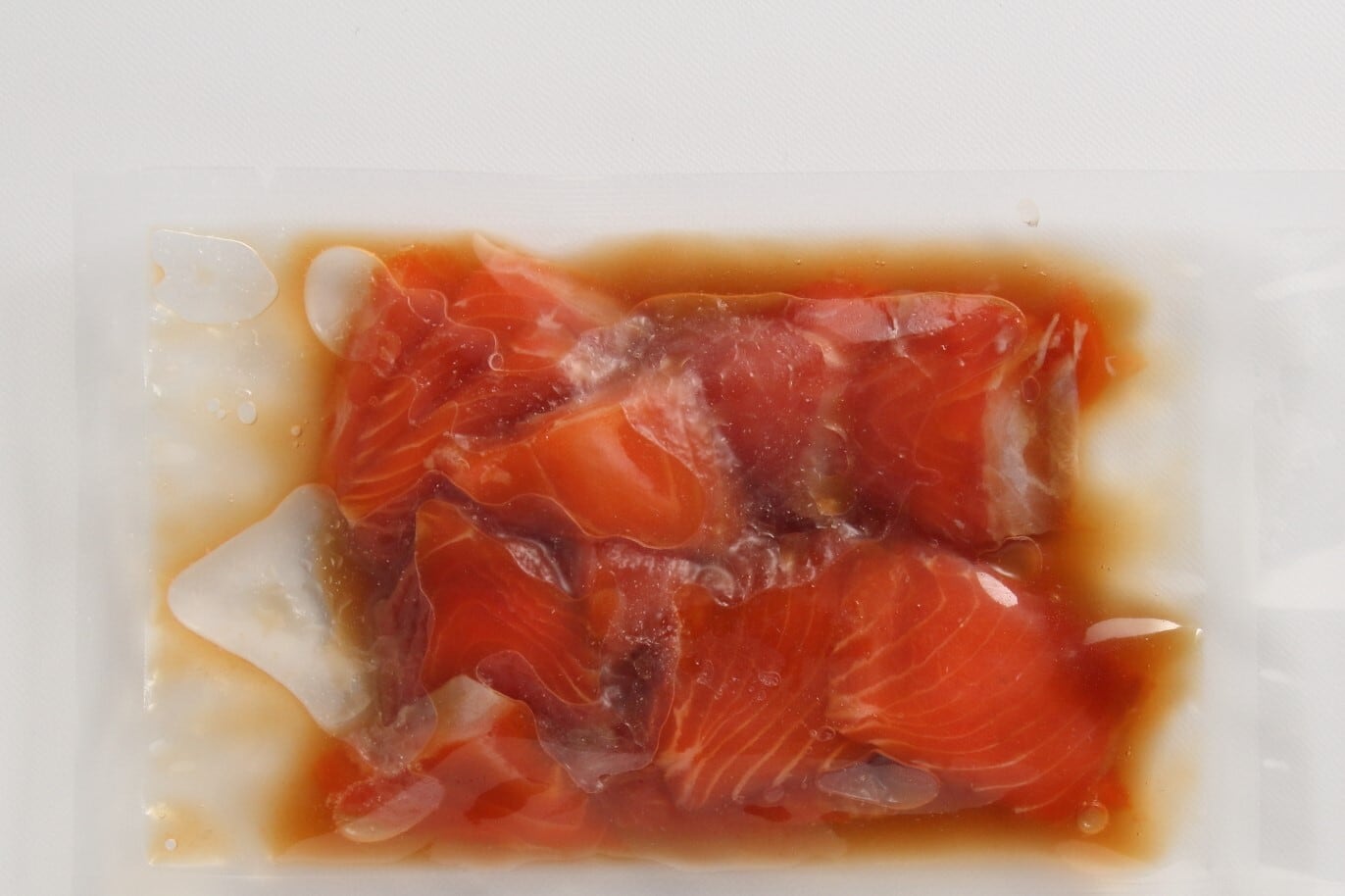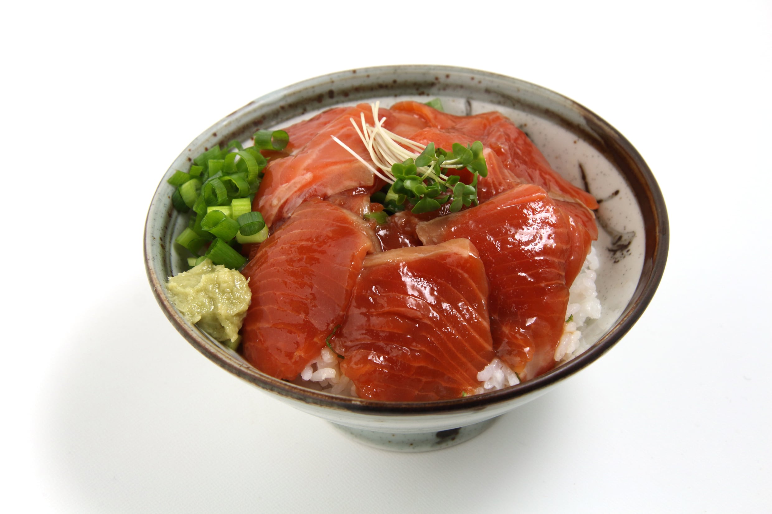 程良い脂身とサーモンの甘味、旨味を味わうことが出来る漬け丼。2日間かけてとるオリジナル魚介だしをベースに味をつけ、素材の旨味を最大限に引き出しています。無添加無着色、シンプルな味付けなので、サーモンの甘味・旨味とだしの味わいをお楽しみ頂けます。解凍して、温かいご飯にかければ簡単にサーモンの漬け丼が完成。お好みでわさびなどの薬味をご利用頂いても美味しくお召し上がり頂けます。