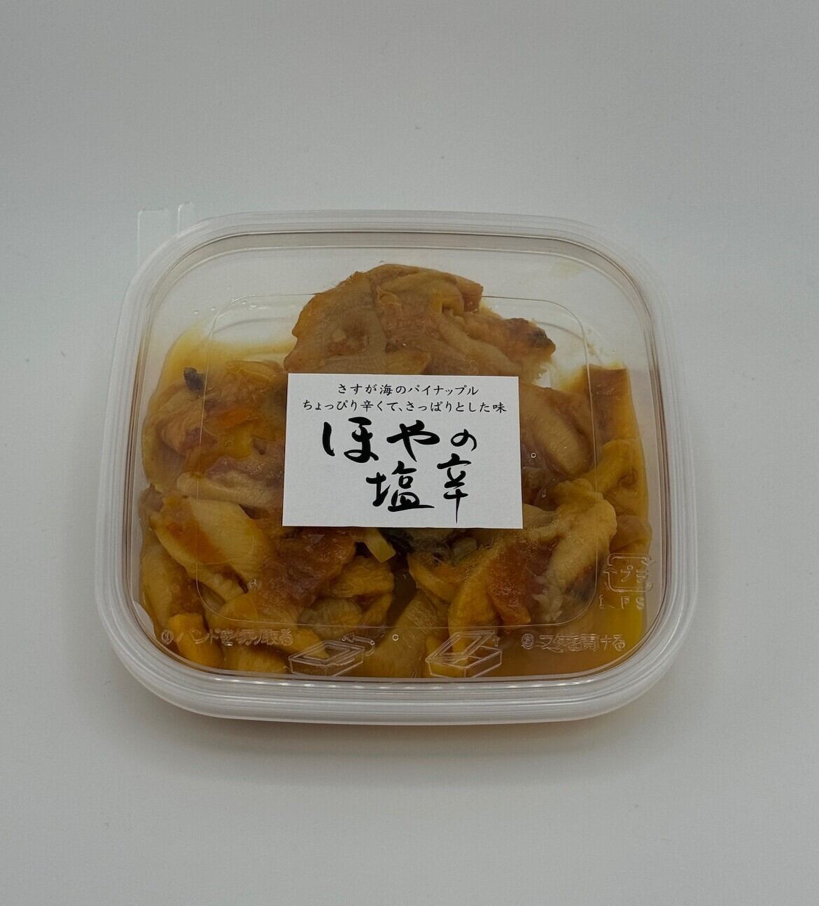 昔から人気の木村の塩辛です。まず、大ぶりの真いかを一夜干しにして旨味をギュッと凝縮します。秋いかの腑で旨さとコクをだし、天日塩で味付したものを2日間ほど熟成させて冷凍しているので、いかの旨味を存分に味わうことが出来ます。赤造りは皮が付いたまま、下足以外の部分が入っているので、よりいかの旨味を味わうことが出来ます。ほやは独特の苦みがあって上品な仕上がりです。解凍してそのままでももちろん、温かいご飯の上に乗せ、温かいお茶を注いでお茶漬けにしたり、薬味と一緒に貝焼にしたりと、様々なアレンジで更に美味しくお召し上がり頂けます。