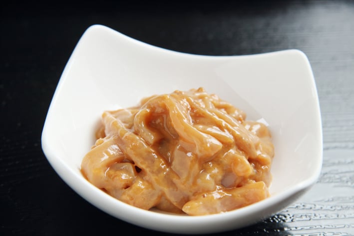 昔から人気の木村の塩辛です。大ぶりの真いかを一夜干しにして旨味をギュッと凝縮しました。秋いかの腑で旨さとコクをだし、天日塩で味付したものを2日間ほど熟成させて冷凍しているので、いかの旨味を存分に味わうことが出来ます。白造りは皮を丁寧に取り、身の部分のみを使用しているので、さっぱりとお召し上がり頂けます。解凍してそのままでももちろん、温かいご飯の上に乗せ、温かいお茶を注いでお茶漬けにしたり、薬味と一緒に貝焼にしたりと、様々なアレンジで更に美味しくお召し上がり頂けます。