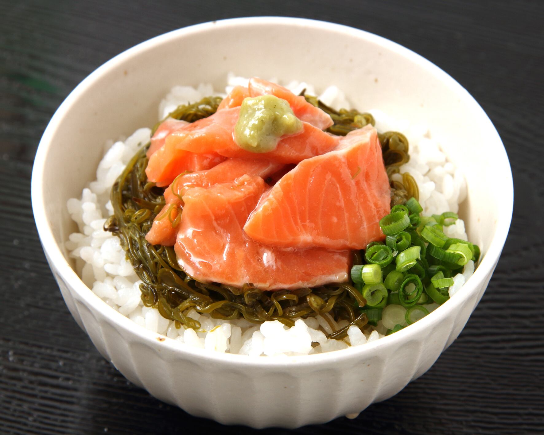 木村特製の出汁をベースに、素材それぞれの旨味を引き出すよう調味料を配合しました。トロッと食感のメカブに、たっぷりとサーモンを加え、味も見た目も豪華な磯どんぶりの素が出来ました。出汁がしっかりしているから、シンプルな味付けで素材そのものの旨味を味わうことが出来ます。メカブのトロッとした食感が出汁をしっかり受け止め、口の中で旨味が広がり、食欲UP!解凍して温かいご飯にかけるだけの簡単調理。これ一品で食卓に彩りを加えます。