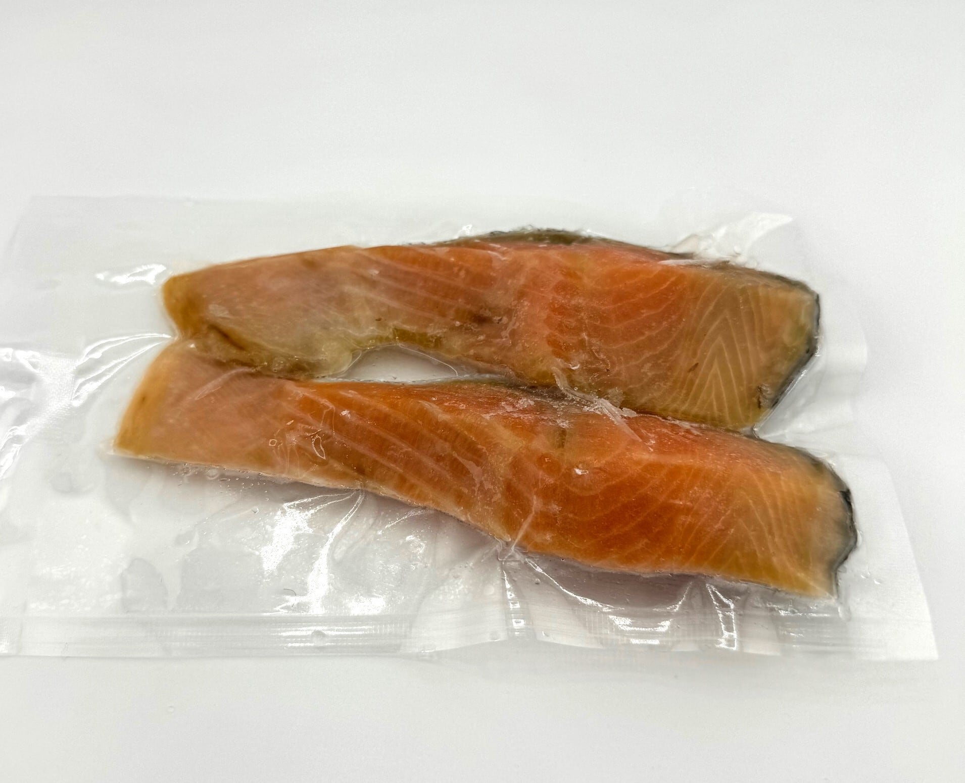 木村商店の新商品のサーモンの一夜干しです。新鮮な宮古サーモンを素材にした、日本の風物詩とも言える逸品です。一晩かけて丹念に干し上げたその風味は、コクと香りを堪能でき、ビールや日本酒にもぴったりです。食べ応えのある食感がクセになり、日本の伝統的な海産物を楽しむことができます。あなたの食卓を特別なものにしてくれること間違いなしです。ご贈答にもご利用ください。